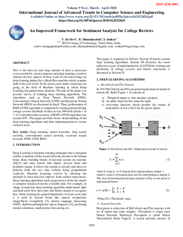 Pdf An Improved Framework For Sentiment Analysis For College Reviews Warse The World Academy Of Research In Science And Engineering Academia Edu